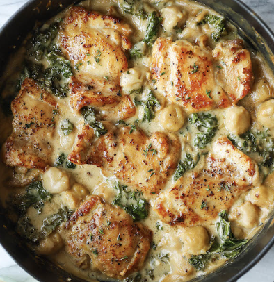 Italian seasoned chicken breast and gnocchi simmered in a light creamy sauce. Finished with spinach, artichokes, parmesan and basil.