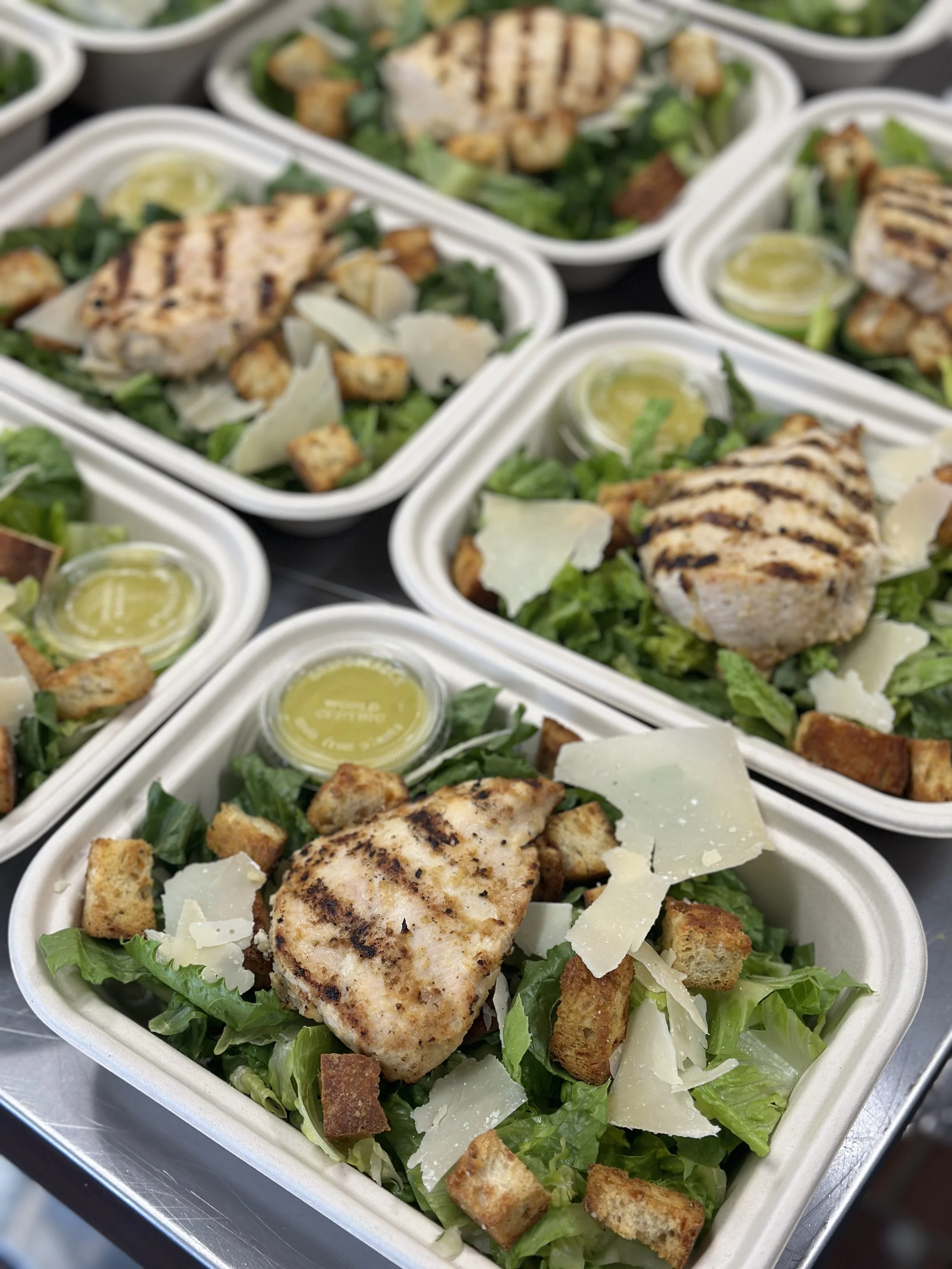 Romaine lettuce topped with grilled chicken breast, parmesan, homemade croutons and creamy caesar dressing.
