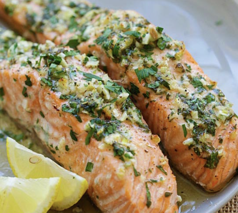 Image 1 of 2 Image 2 of 2 Herb Salmon with Bacon Parmesan Risotto $16.00 Salmon roasted with lemon herb butter served with creamy bacon parmesan risotto.Gluten-free, Soy-free, Nut-free Add To Cart Added! Salmon roasted with lemon herb butter served with creamy bacon parmesan risotto.Gluten-free, Soy-free, Nut-free