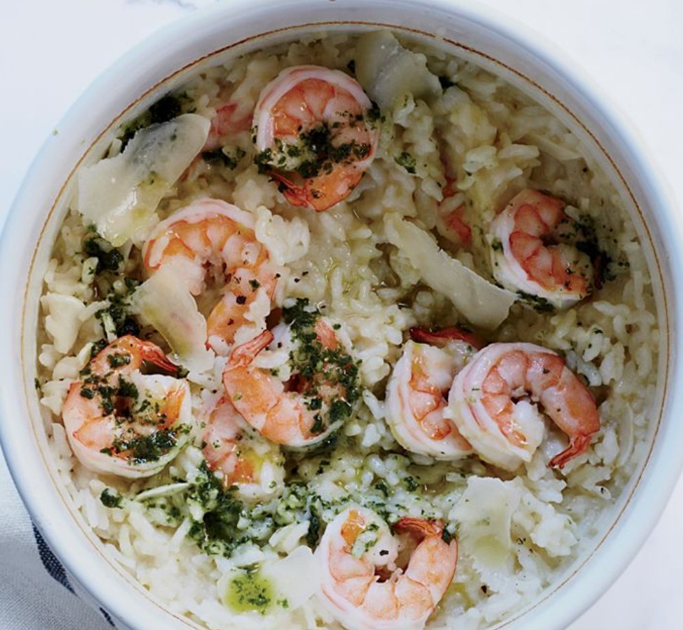 Creamy risotto cooked with lemon, shallots, garlic, white wine and roasted fennel with garlic shrimp on top.