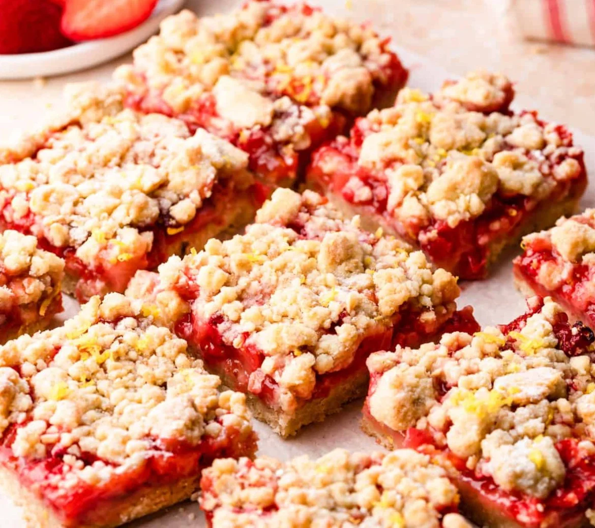 Image 1 of 1 Strawberry Lemon Crumble Bars $15.00 Layered bars with sweet and tart strawberry lemon filling and a buttery oat crumble. 4 bars/ order.Soy-free Add To Cart Added! Layered bars with sweet and tart strawberry lemon filling and a buttery oat crumble. 4 bars/ order.Soy-free